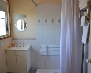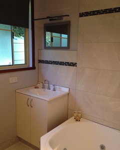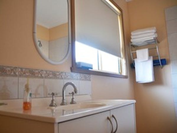 This 2 bedroom cottage is heated/cooled by a split system, with extra panel heaters in the bedrooms, The Kitchen/Living area has everything you need to make your stay comfortable along with a massage chair. The spacious bathroom has a spa bath with shower over it and self catering is easy in the fully equipped kitchen. The Main bedroom has a Queen Bed and the 2nd bedroom has a Queen bed plus a Single Bed