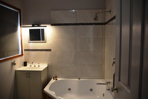 The open plan kitchen/living area is fully equipped with everything you need, including a coffee pod machine and massage chair, and is heated/cooled by a split system and ceiling fan. There is also a panel heater in the separate bedroom, which has a Queen Bed. The bathroom is also very spacious and has a spa bath with a shower over it.